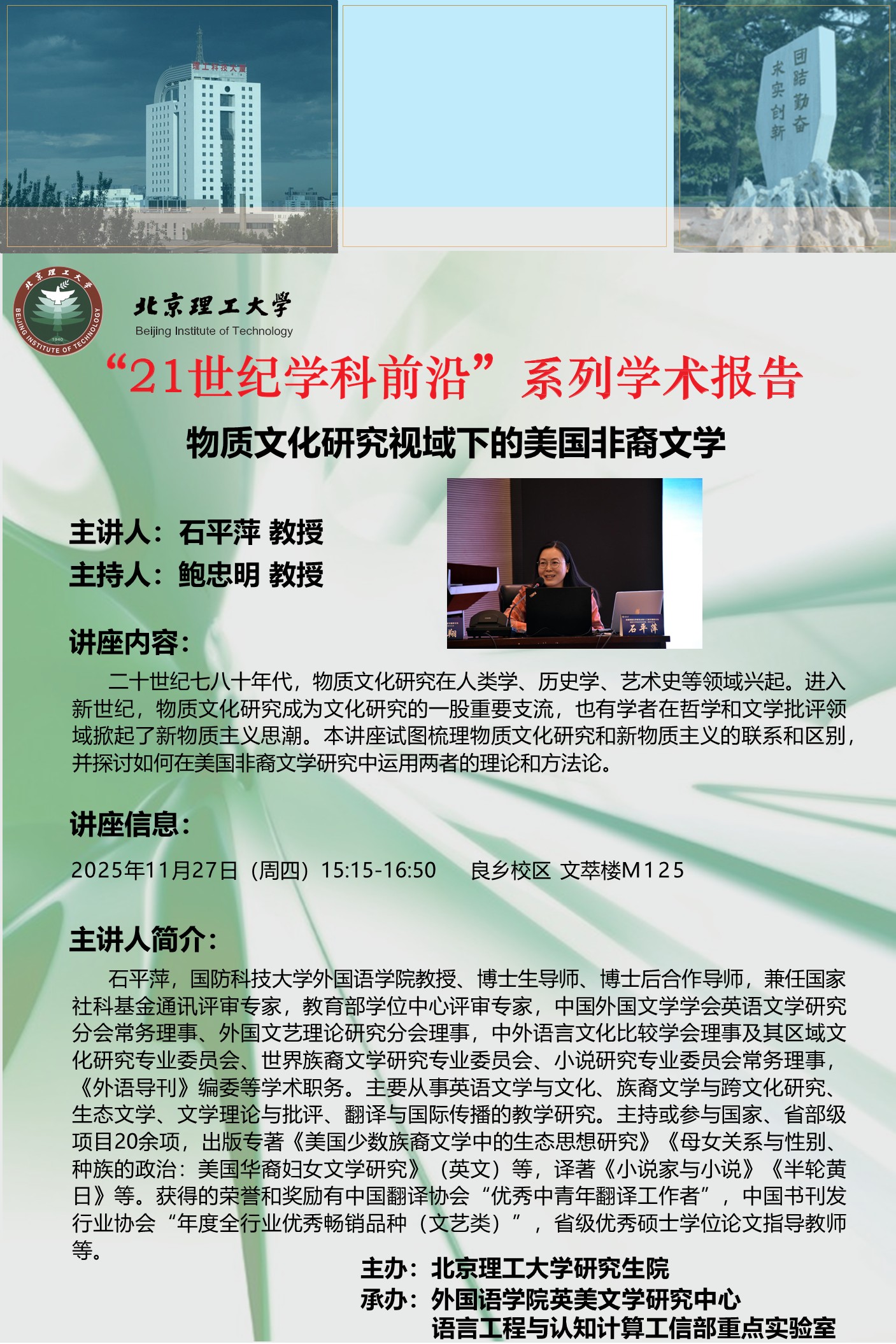 国防科技大学教授石平萍为开元网站登录入口外国语学院师生作学术讲座