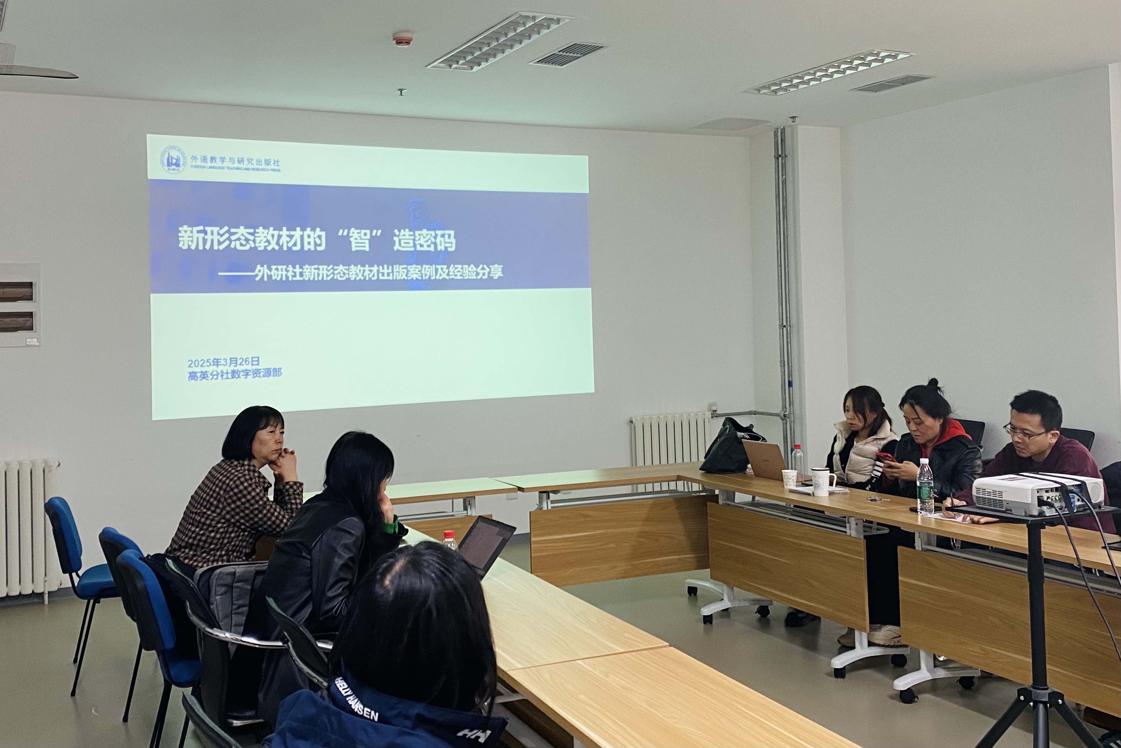2025年3月26日下午,在文萃楼L609开展了本学期第一场培训活动,主题为“新形态教材的‘智’造密码——外研社新形态教材出版案例及经验分享”,由外研社高英分社数字资源部副主任陈琛老师主讲,外国语学院本科教学副院长张勇主持。各专业系部负责人、主持教材相关项目的老师参加了此次活动。