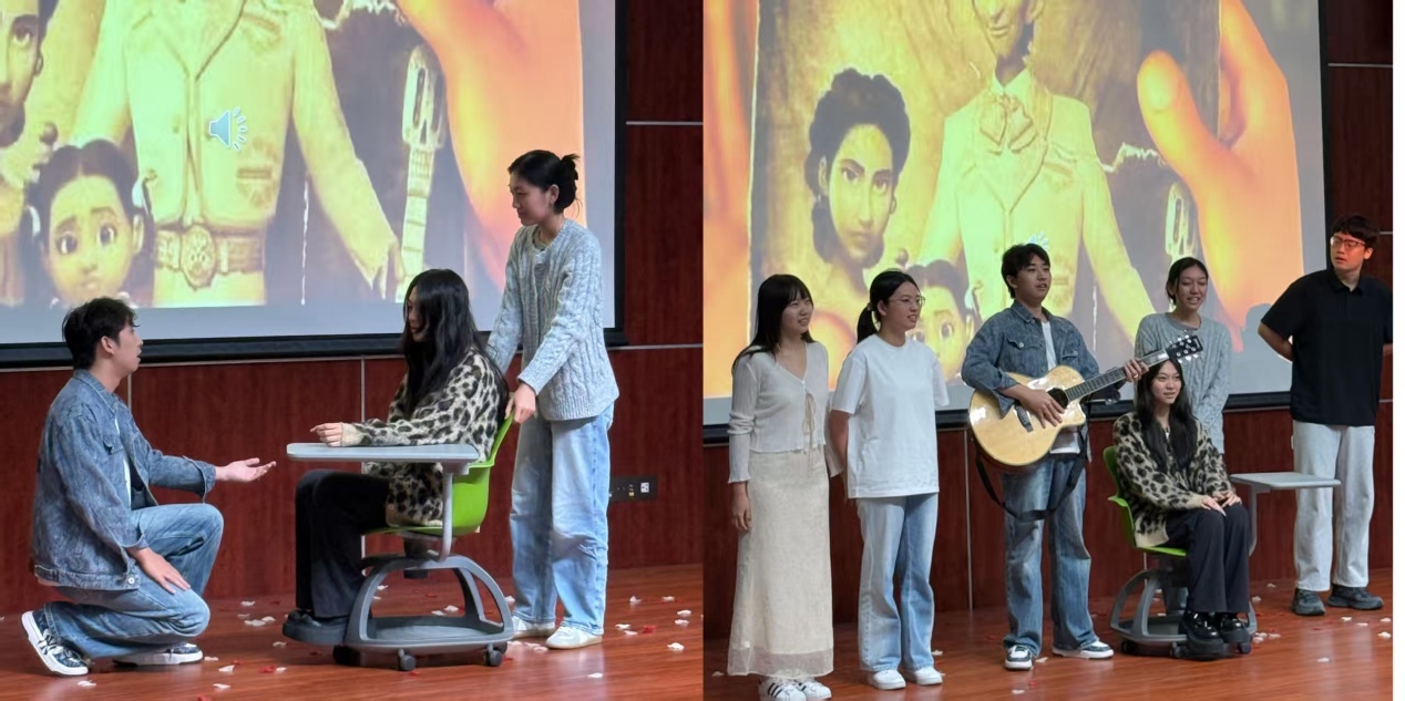 《西游记》是中国第一部浪漫主义章回体长篇神魔小说。剧本在原著的基础上精心改编,呈现了三打白骨精的完整故事线。这场戏剧邀请了不同年级,不同国家的同学参与表演。他们用精准的台词,形象的声音和灵活的动作,将奇幻角色塑造得活灵活现,为观众呈上一场身临其境的表演。跨国籍的合作也为文化交流与文化互鉴提供了宝贵机会。